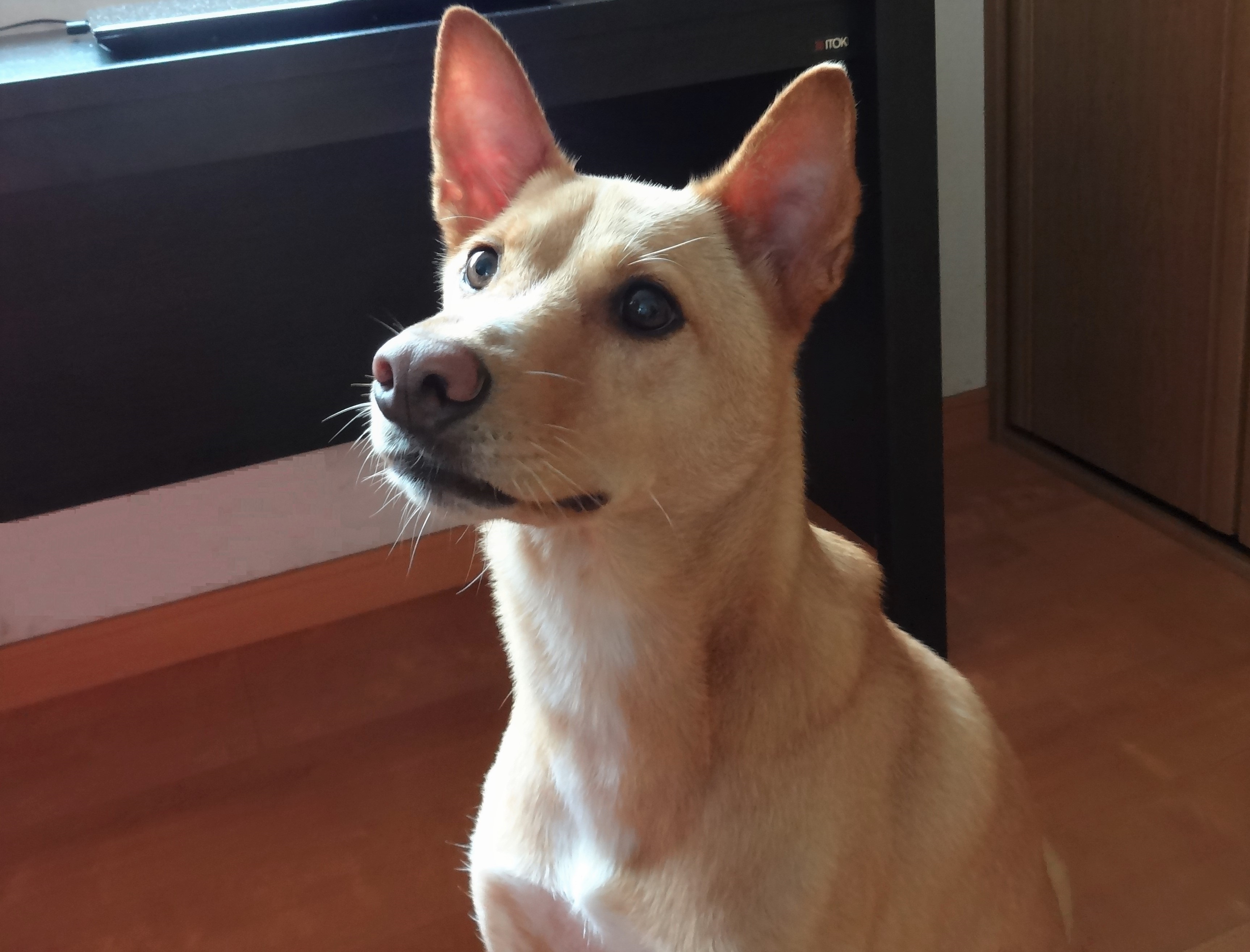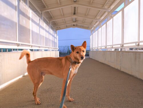 ゆうは柴犬の血が入った雑種です。外見は柴犬とはちょっと違っていて、言われないとシバが入っているとは、わからないかもしれません。でも、しっぽをよく見ると、柴犬の様にくるんと巻いているんです。毛の厚みは柴犬より少なく、アンダーコートもあんまりありません。その分、季節の変わり目の抜け毛はそれほどでもないので、助かっています。大きさは、柴犬よりちょっと大きく、体重は17kg。そして、特徴的なのは、脚が長いこと。散歩をしていると、脚が長いのねーと、よく言われます。