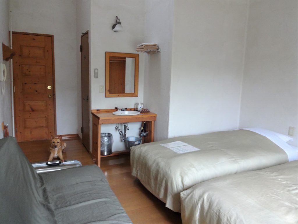 客室は5部屋のみ。決して広くはありませんが、天井が高いので狭さはあまり感じません。ベッドとクロゼットなど必要最低限の家具のみの素朴なお部屋ですが、とても清潔感があります。壁には珪藻土を使っている(オーナーさんがご自分で塗られたと聞きました)ため、臭いが全くしません。