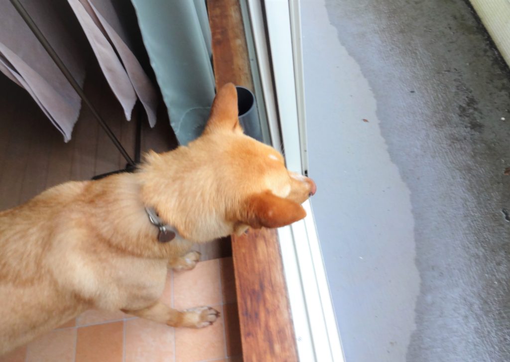 翌朝、部屋の窓から外を見ると曇り空。朝方、少し雨が降ったようで、ベランダが濡れていました。