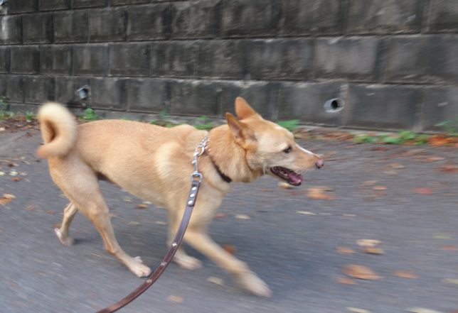 犬は色の違いが人のようには区別できませんが、かなり暗い中でも物を見分けることができるのだそうです。一説によると、人の5倍くらい良く見えているそうです。私たちは暗い道では懐中電灯が役立ちますが、ゆうには必要ないわけですね。