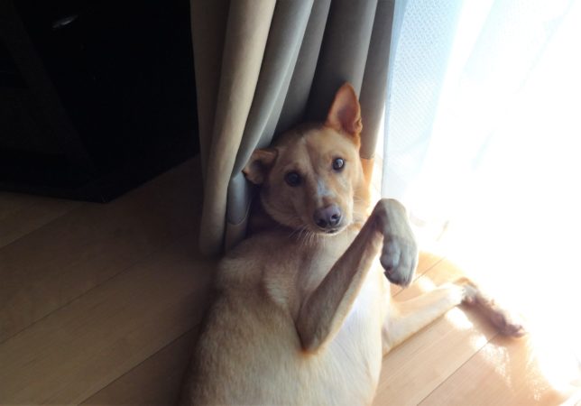 視力も、犬はせいぜい0.3くらいと言われていますので、ぼやけて見えているようですが、サイトハウンドという猟犬は、獲物を見つけると視覚を使って追いかけるので、例外的に視力が良いと言われています。走力に優れ、とても早く走ることができ、体型は細身で、長い脚に特徴があります。ゆうはミックスですが、脚長でスリムな体型で、走るのがとにかく早いので、サイトハウンド系の犬種の血が入っているのではないかと思います。もしかすると視力は案外、良いのかもしれません。
