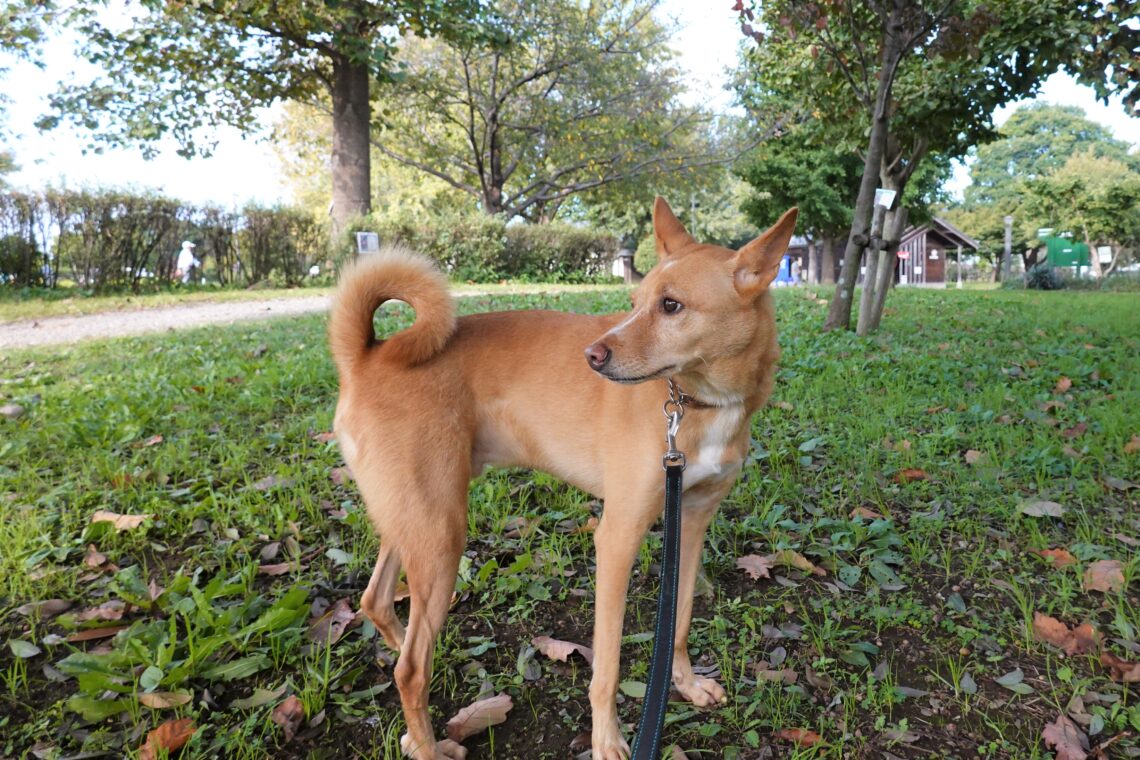ゆうのしっぽは、普段は柴犬のようにくるんと巻いていますが、柴犬のしっぽより少し長めなので、ふり方が激しくなってくるとカールがほどけてきて、家の中だと、そばにあるテーブルなどにあたったりすることも。自分でも、あれ?と振り返ったりして、それが何とも可笑しくもあり、可愛くもあります。