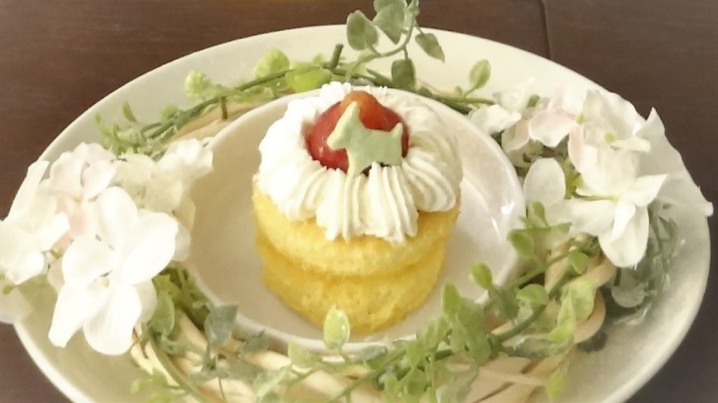 食事のあと、ゆうの誕生日のお祝いに、バースデーケーキをプレゼントしていただきました。
