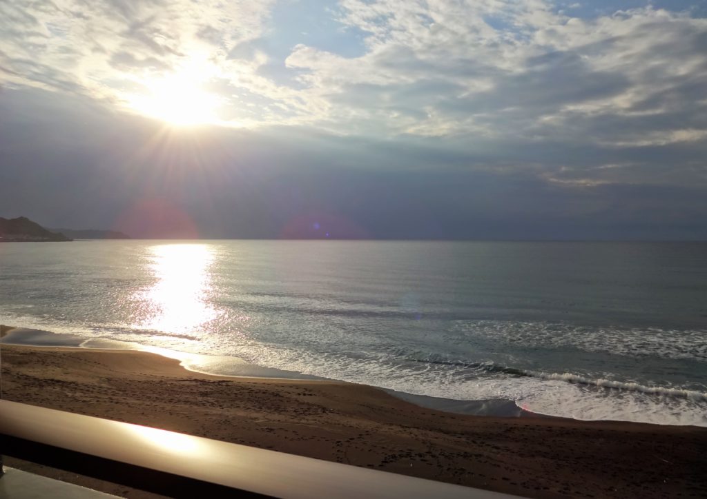 部屋でひと休みした後、散歩に出ました。ホテルのすぐ目の前には砂浜が広がっています。(でも、潮の流れが速いため、泳禁止区域となっていて、遊げないそうです。)