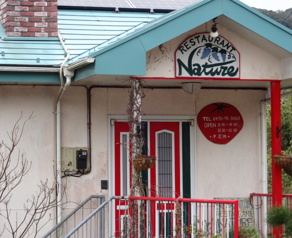 2日続けて夕食には、新鮮な魚を中心とした和食を堪能したので、旅行中、最後のランチは洋食にしようということで、事前にネットで調べてあった鴨川にあるイタリアンレストラン、ナチュールに行きました。鴨川の中心地から、国道128号線を勝浦方面へ10分ほど行ったところにある一軒家のレストランです。周囲にあまりお店がなく、少しわかりにくいので、カーナビに住所を入力して行くのが良いと思います。駐車場は、お店の少し先にありました。