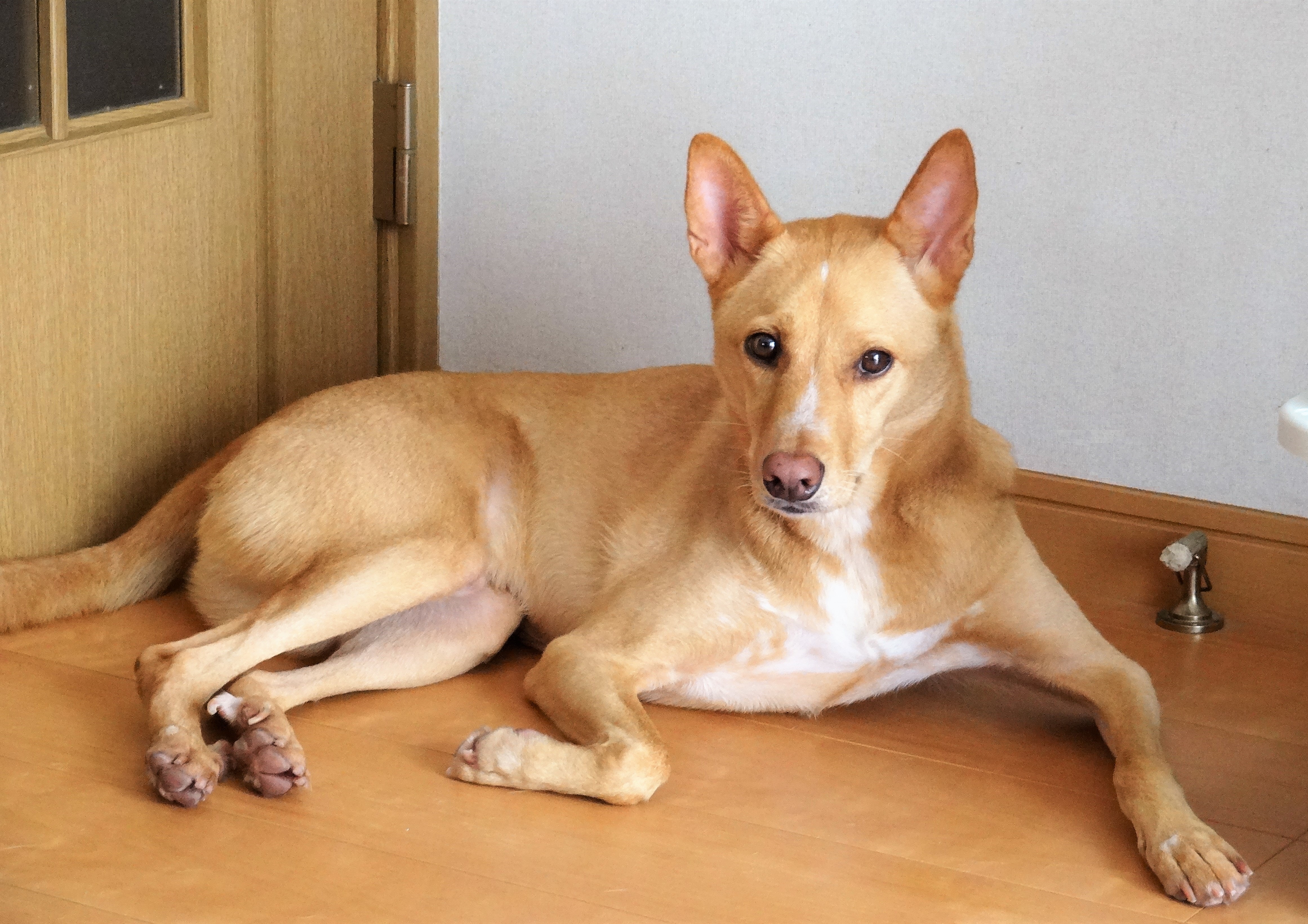 毛にはちょっぴりアンダーコートがありますが、柴犬ほど密集してないですし、体型的にも足が長いため、比較的、地面の熱が伝わりにくいようです。そして、マズルが長いのも呼吸で体温を下げるのに有利なようです。