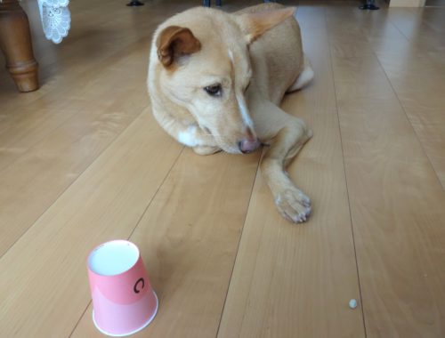 リビングには床暖房を入れているので、テーブルの下は温まった空気で、こたつの中のようになってます。こたつがない我が家で、ゆうだけが、こたつの温もりを満喫しています。